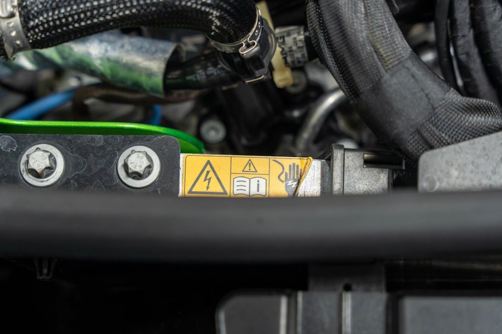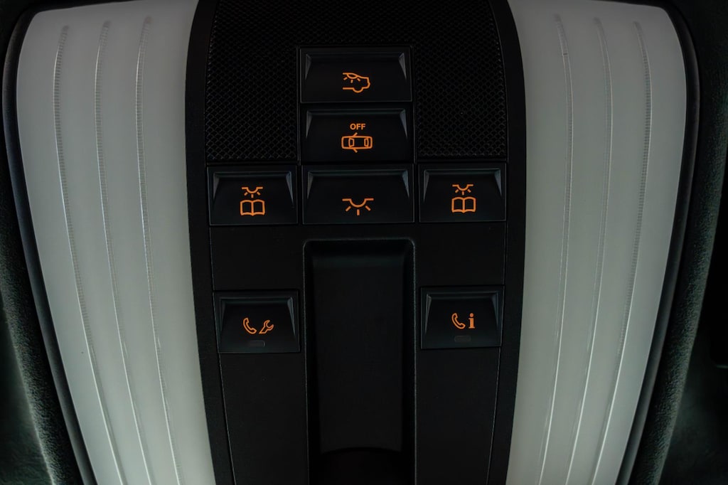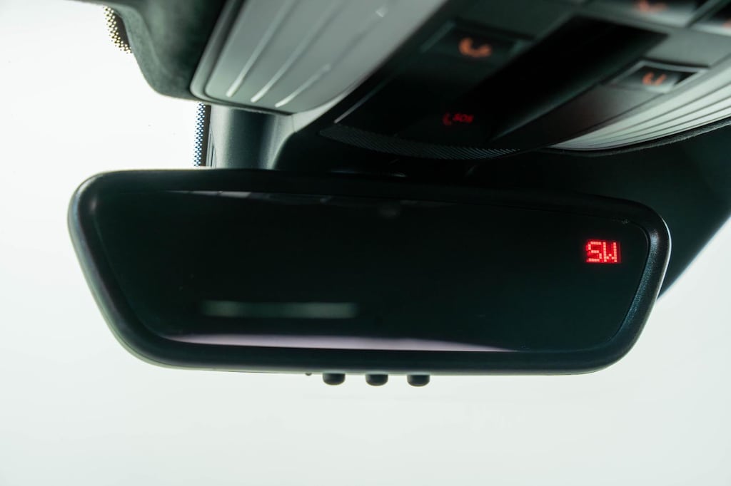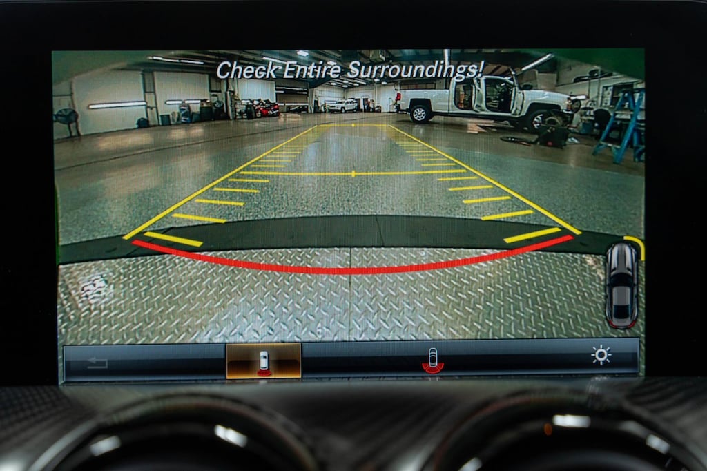 - The vehicle is equipped with a camera that displays an image of the area behind the vehicle on an interior display.