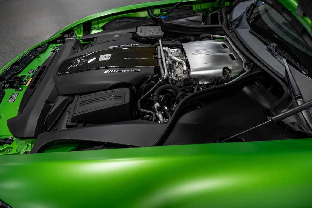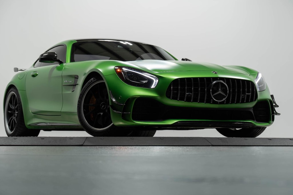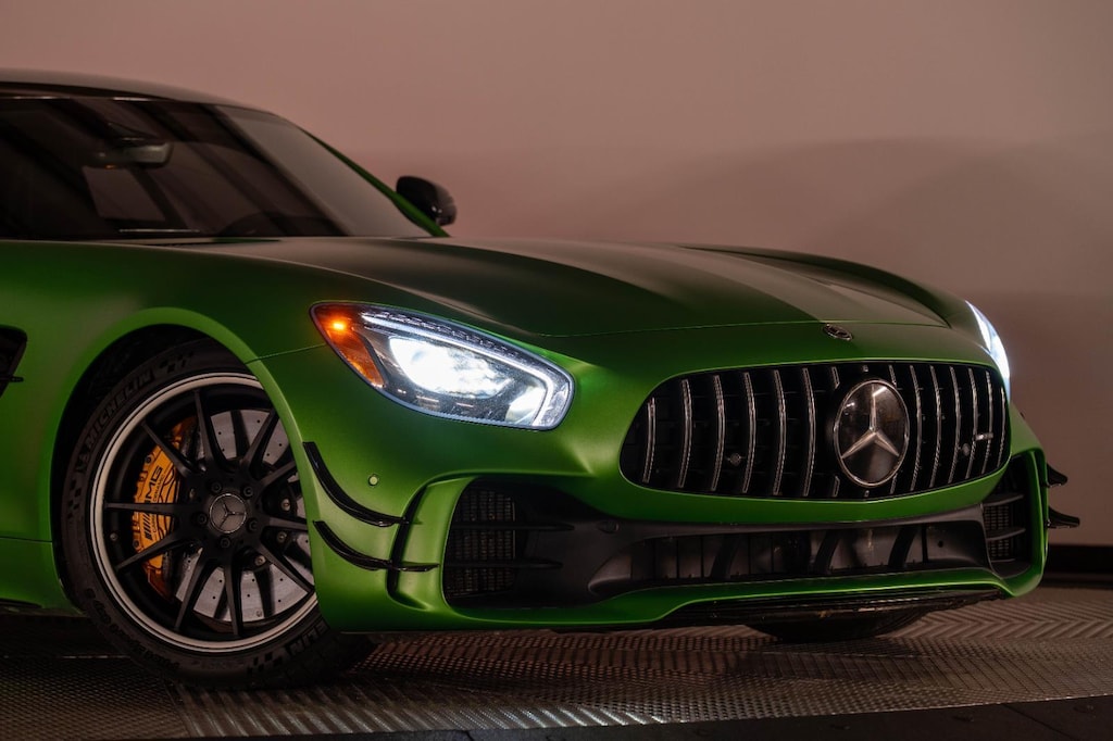 2018 Mercedes-Benz AMG GT AMG GT R, has a AMG Green Hell Magno exterior with a Black w/Yellow interior. Call us at 913-601-5486 and reference stock Number 214045 for further details.