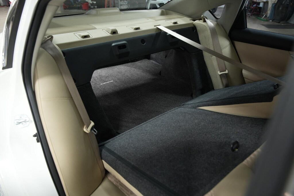 - The vehicle is equipped with a camera that displays an image of the area behind the vehicle on an interior display.