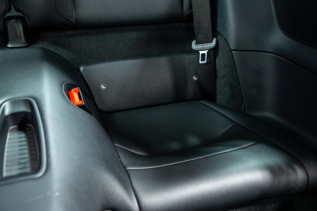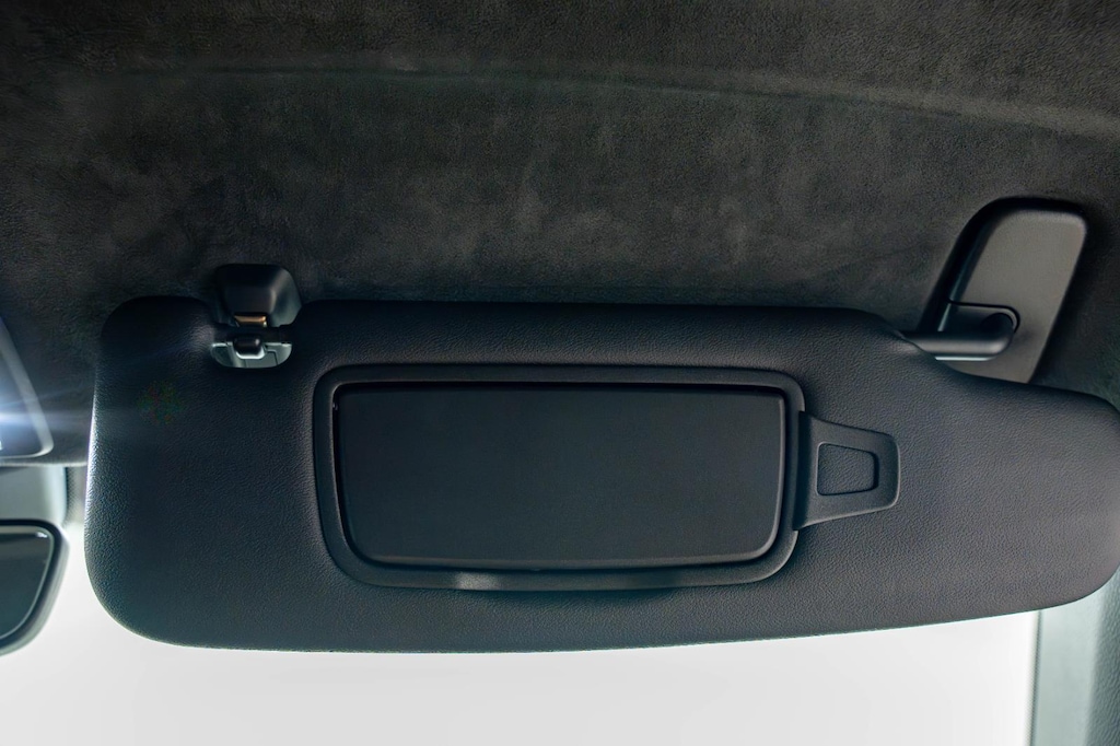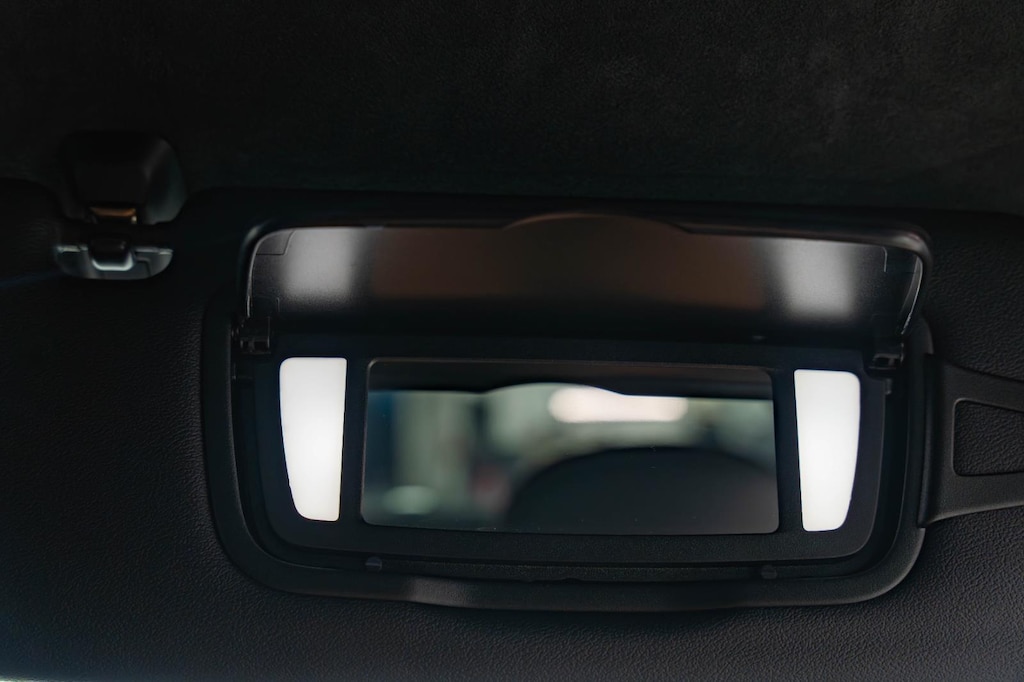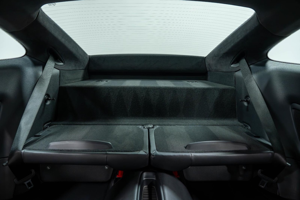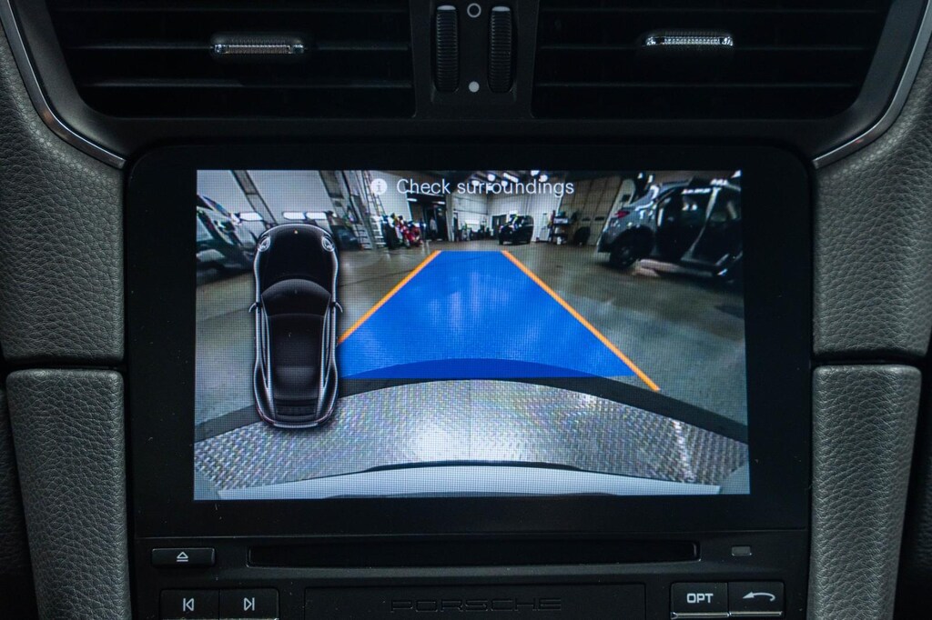 - The vehicle is equipped with a camera that displays an image of the area behind the vehicle on an interior display.