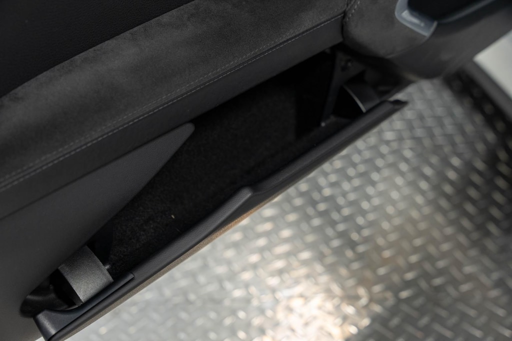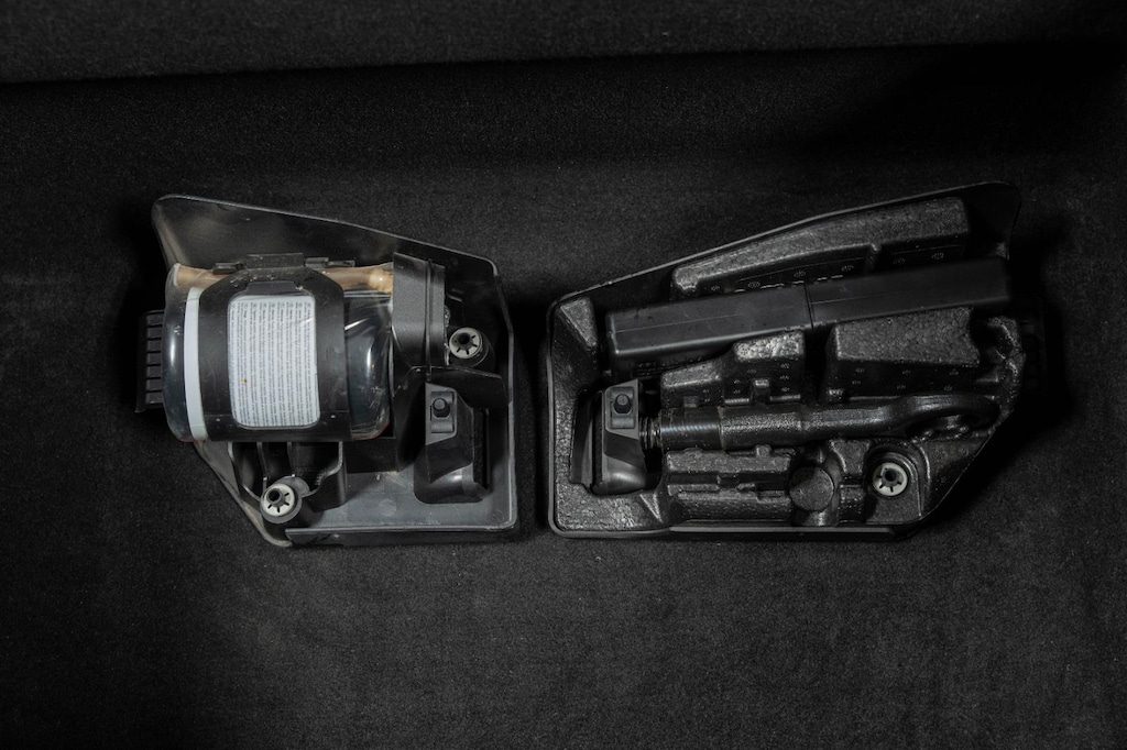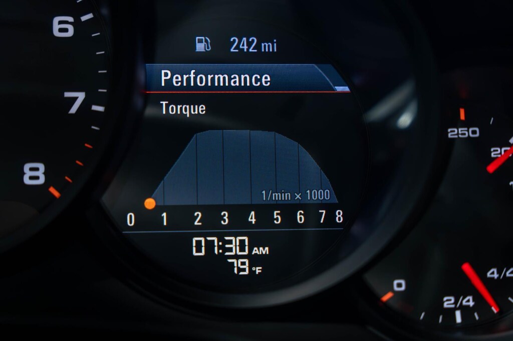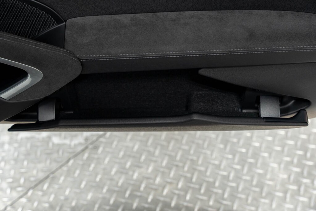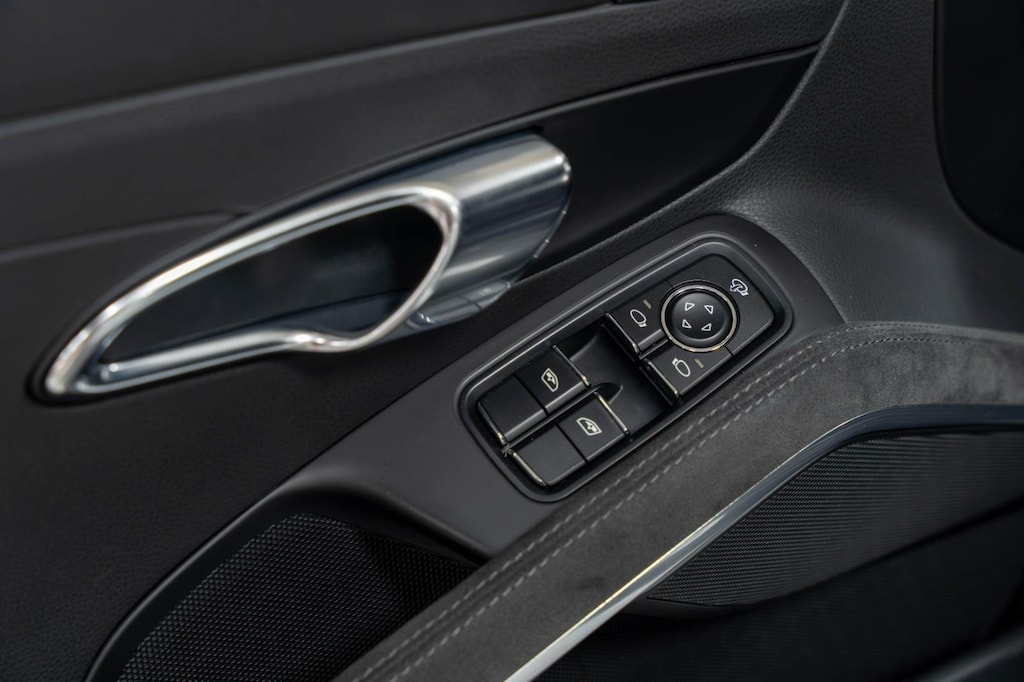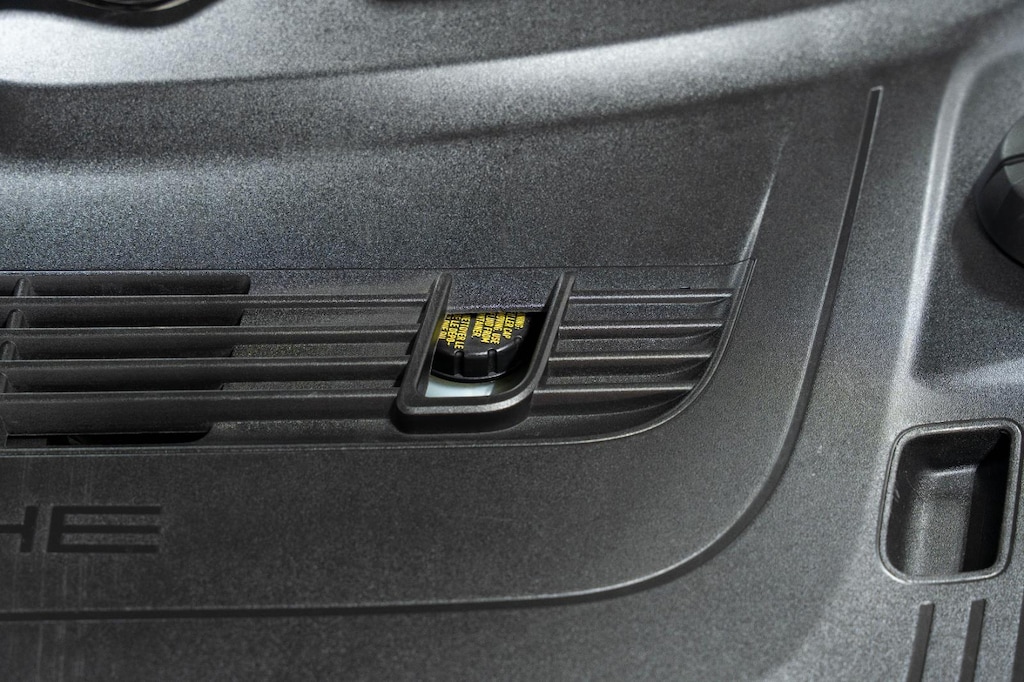 - The vehicle is equipped with a camera that displays an image of the area behind the vehicle on an interior display.