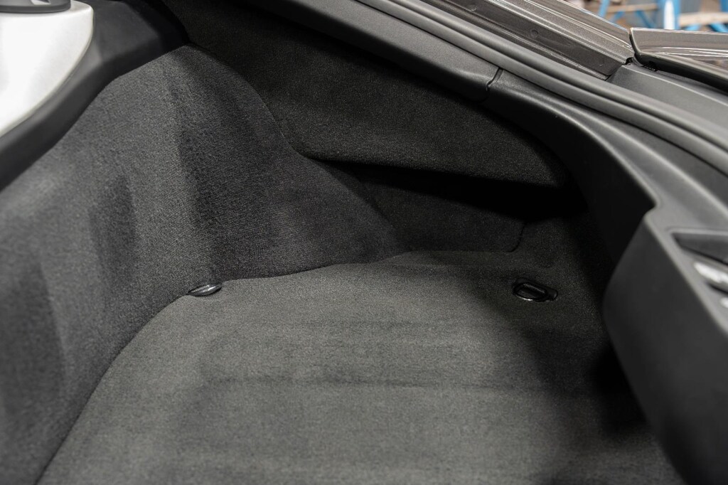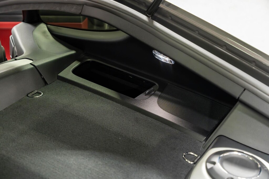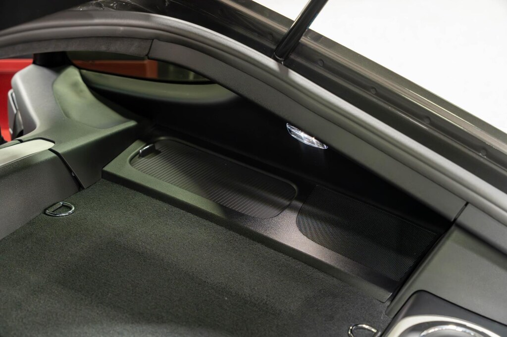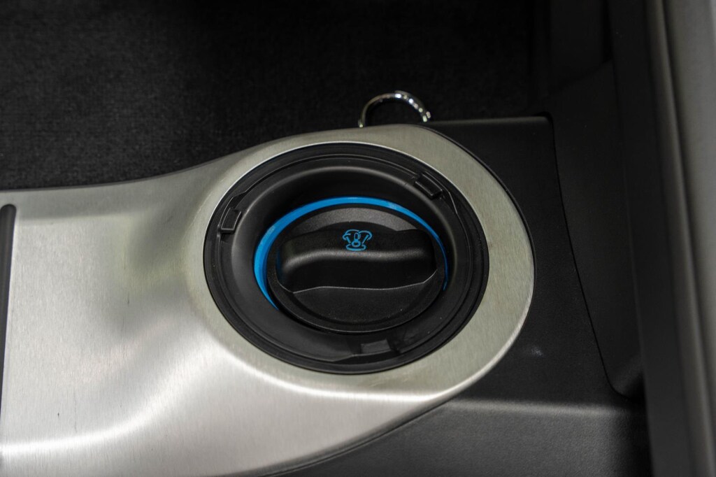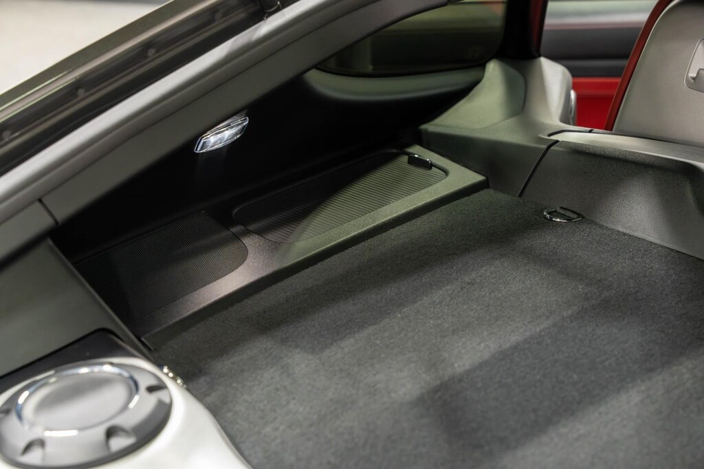 - The vehicle is equipped with a camera that displays an image of the area behind the vehicle on an interior display.