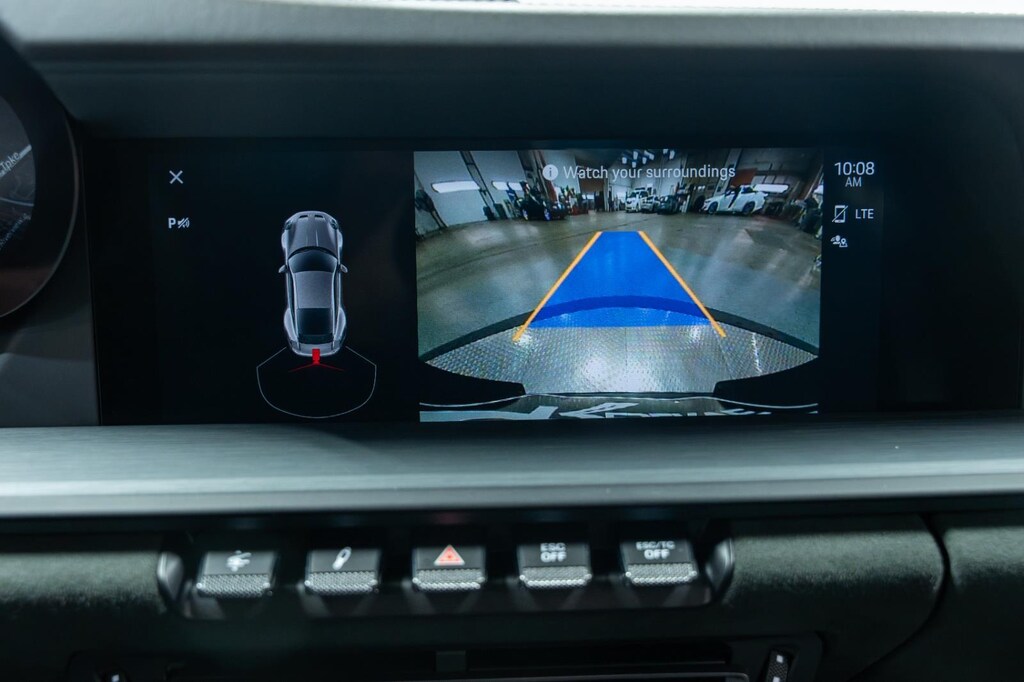 • The vehicle is equipped with a camera that displays an image of the area behind the vehicle on an interior display.