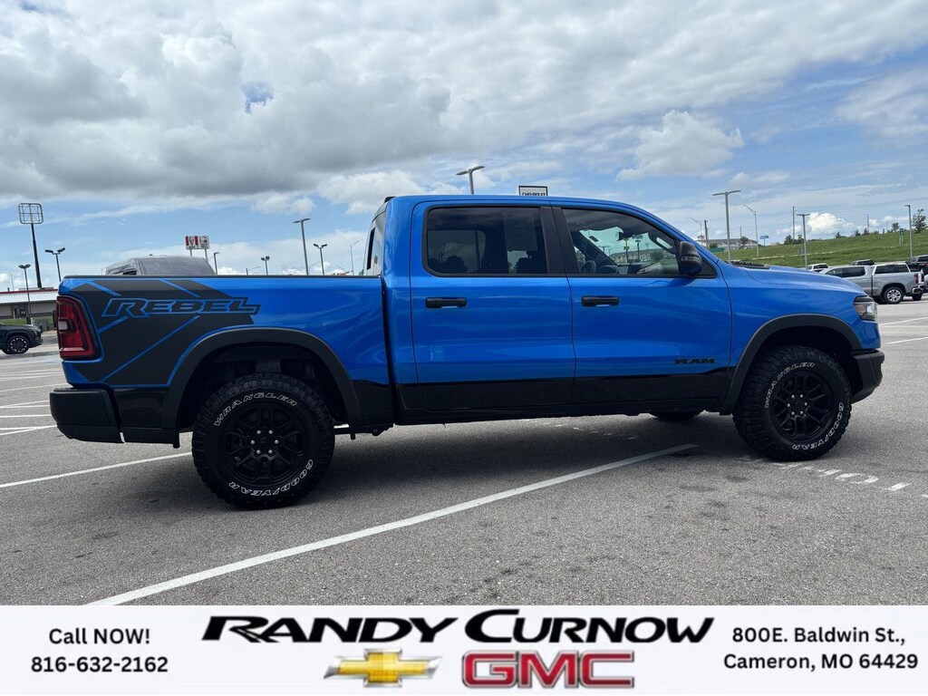 2025 Ram 1500 Rebel, has a Hydro Blue Pearl exterior with a Black w/Red Inserts interior. Call us at 816-632-2162 and reference stock Number U7912 for further details.