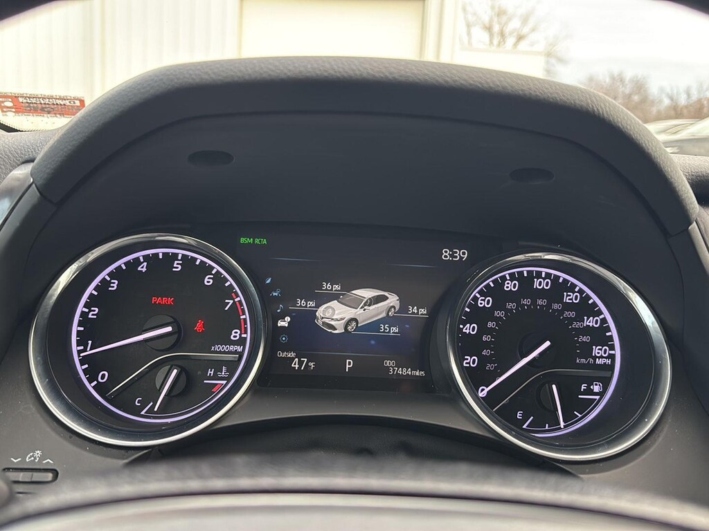 - The vehicle is equipped with a camera that displays an image of the area behind the vehicle on an interior display.